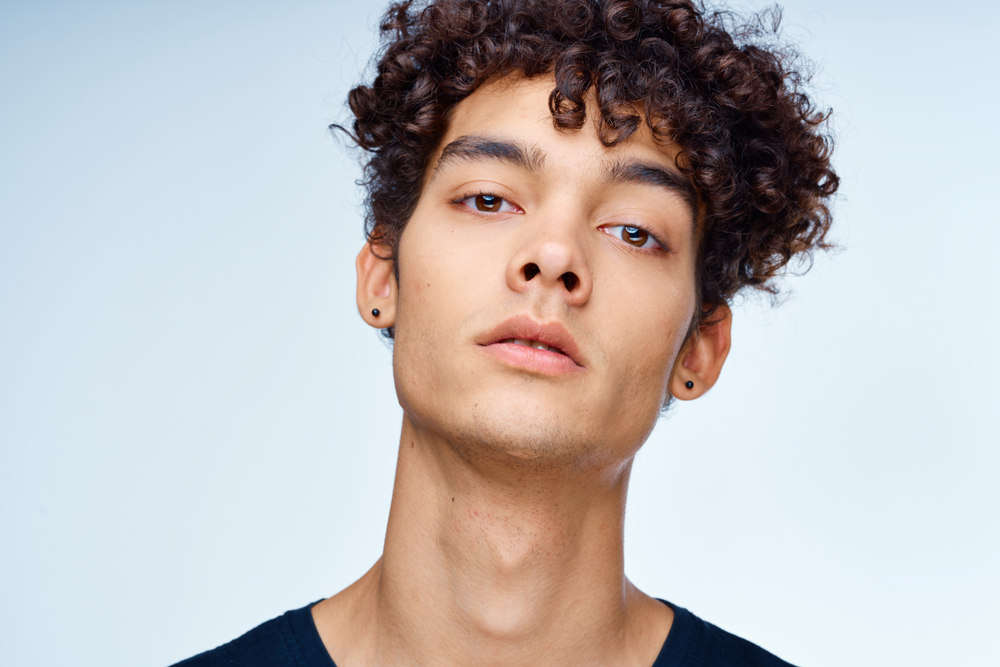 • Curly hair looks great with textured crops or medium fades